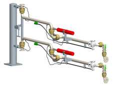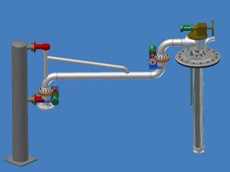 下裝鶴管 適用于成品油、化工介質(zhì)等裝車,由旋轉(zhuǎn)接臂、軟管及進口干式脫離接頭(干式閥)等組成。 |